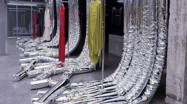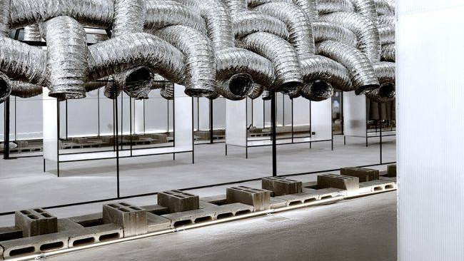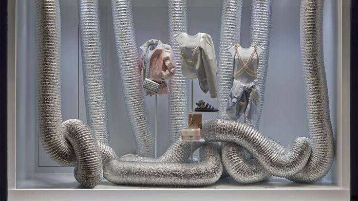 Гофрированные металлизированные трубы в выставочном дизайне